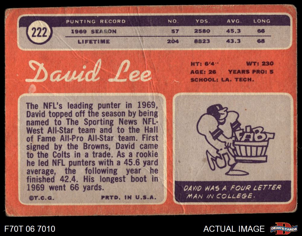 1970 Topps #222 David Lee AUTHENTIC