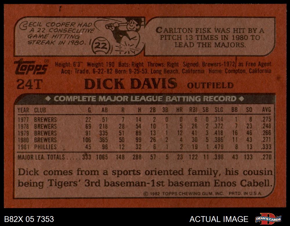 1982 Topps Traded #24 T Dick Davis 6.5 - EX/MT+