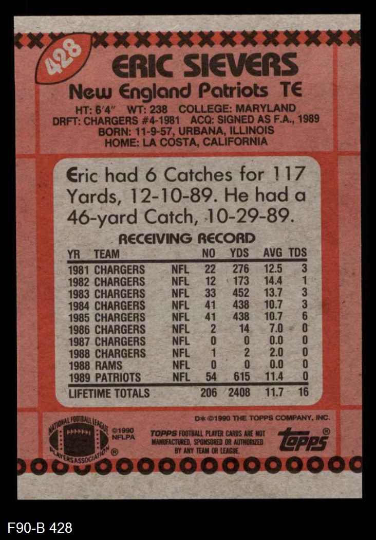 1990 Topps Football Cards (3,253 available)1990 Topps Patriots (104 available)