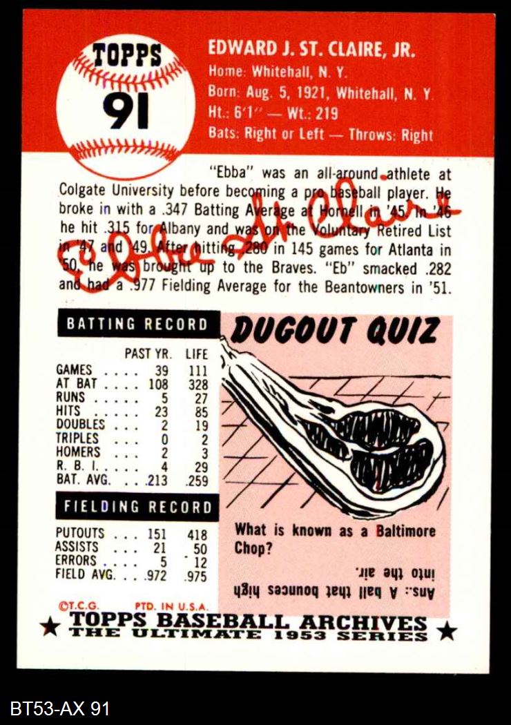 1953 Topps Archives #91 Ebba St.Claire