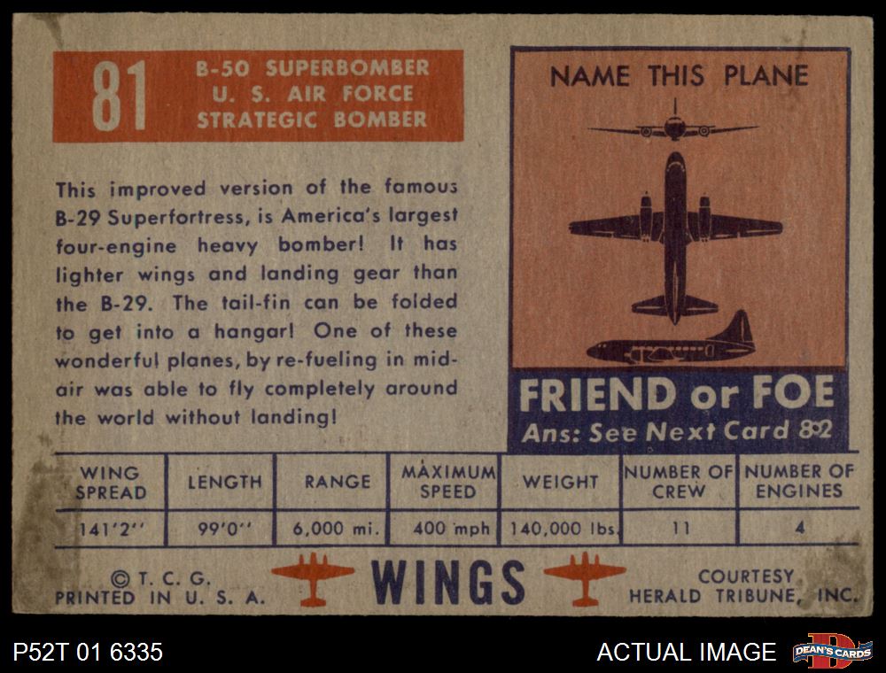 1952 Topps Wings #81 B-50 Superbomber 4 - VG/EX