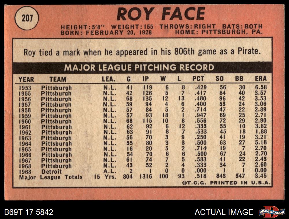 1969 Topps #207 Elroy Face 1.5 - FAIR