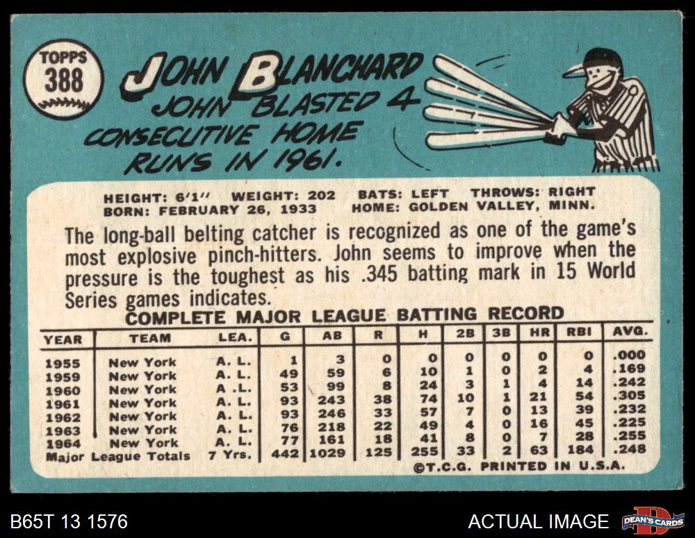 1965 Topps #388 John Blanchard 3 - VG