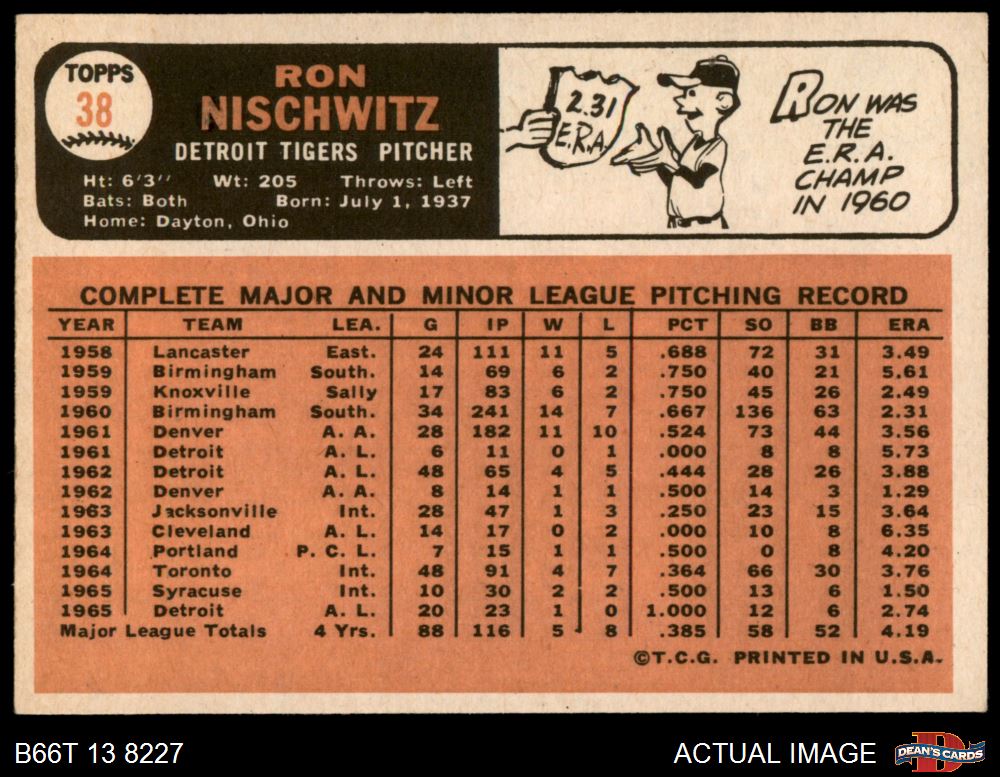 1966 Topps #38 Ron Nischwitz 2 - GOOD