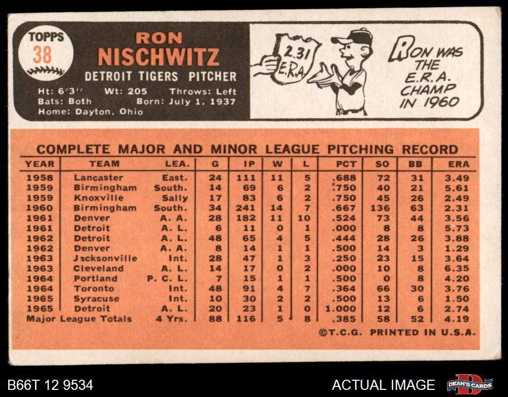 1966 Topps #38 Ron Nischwitz 3 - VG