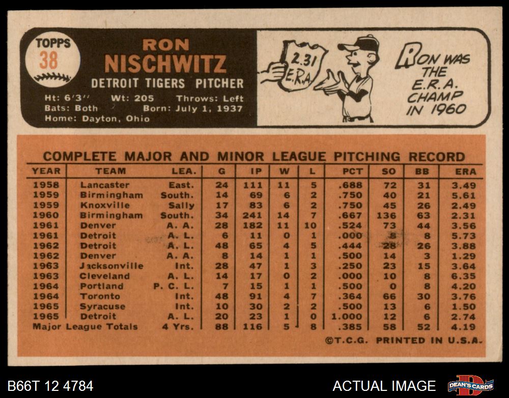 1966 Topps #38 Ron Nischwitz 4 - VG/EX