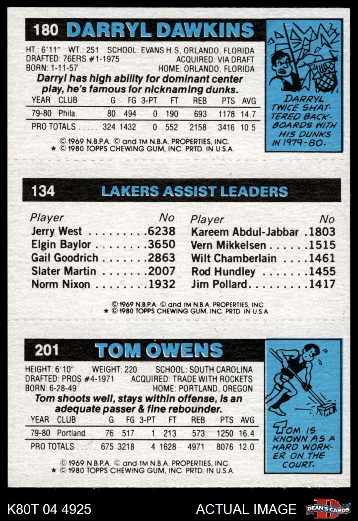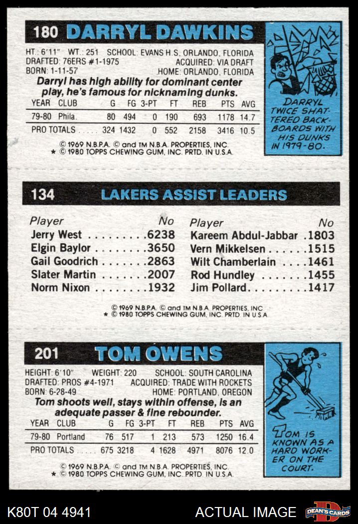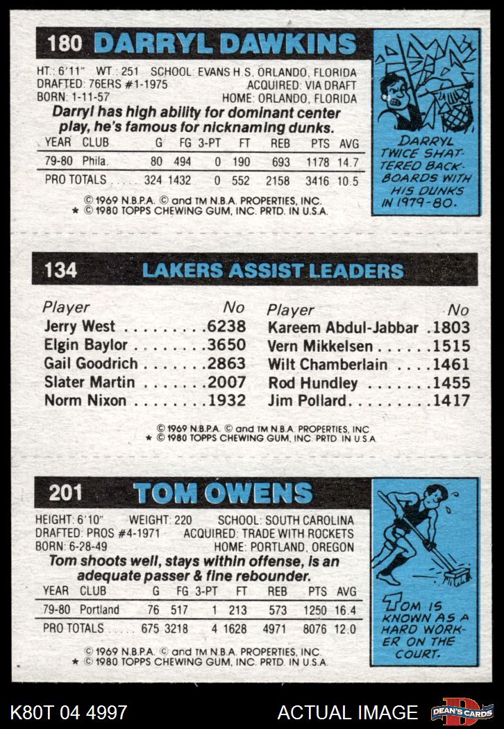 1980 Topps - Tom Owens / Norm Nixon / Darryl Dawkins 201 / 134 / 180 7 - NM