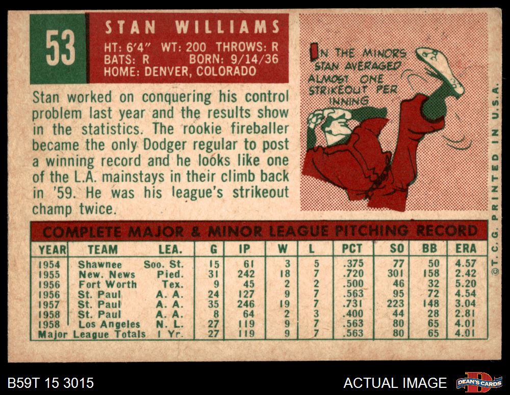 1959 Topps #53 Stan Williams 4 - VG/EX
