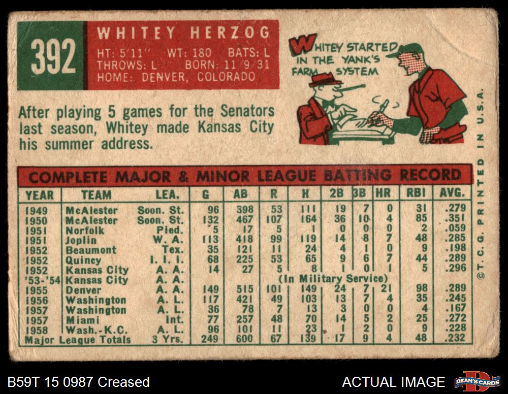1959 Topps #392 Whitey Herzog 1 - POOR