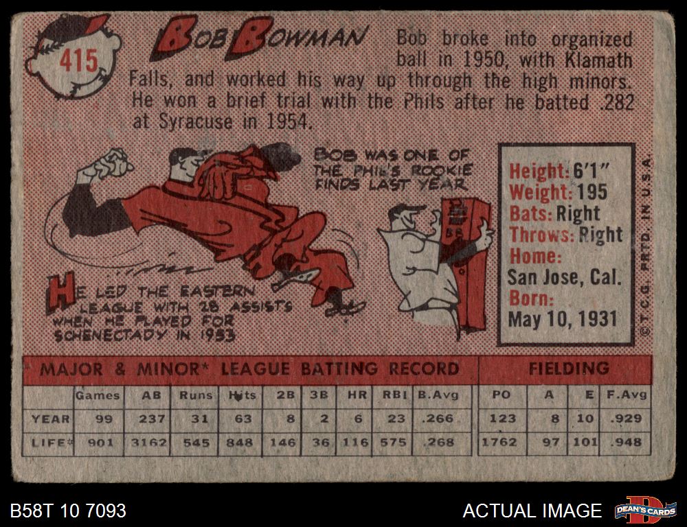 1958 Topps #415 Bob Bowman 1.5 - FAIR