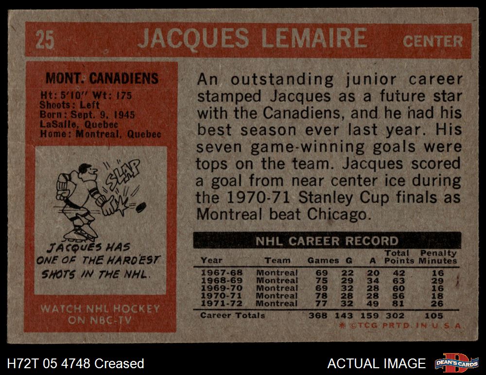 1972 Topps #25 Jacques Lemaire Front Thumbnail