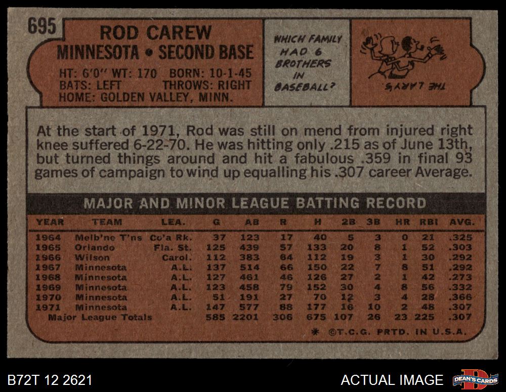 1972 Topps #695 Rod Carew