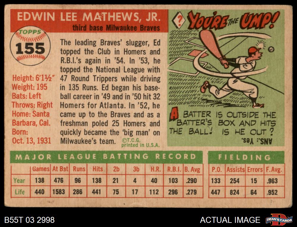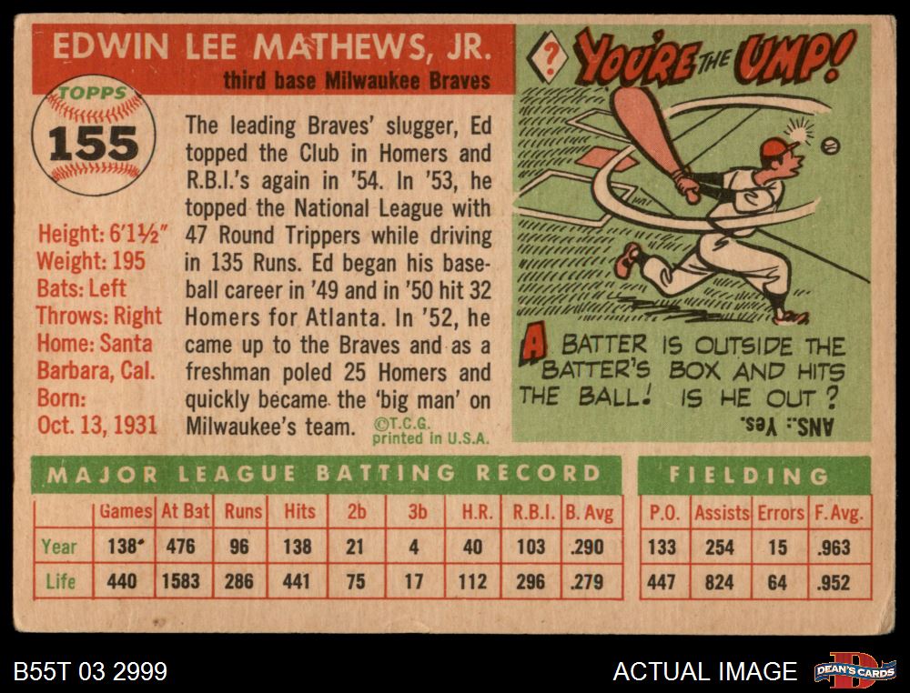 1955 Topps #155 Eddie Mathews