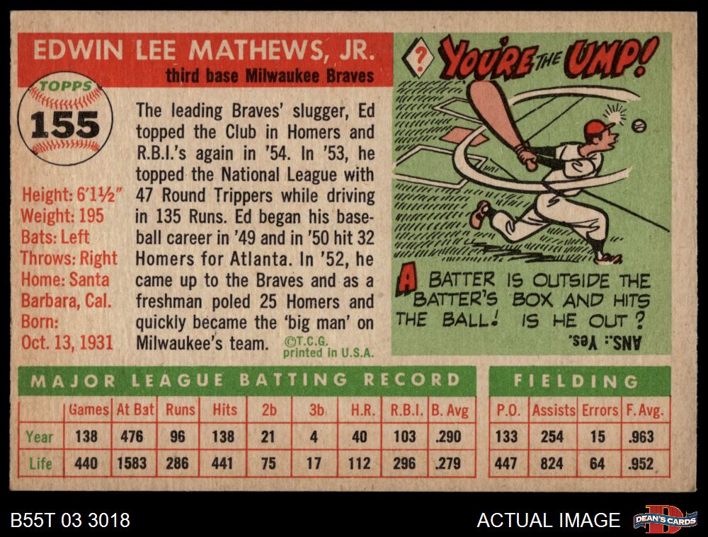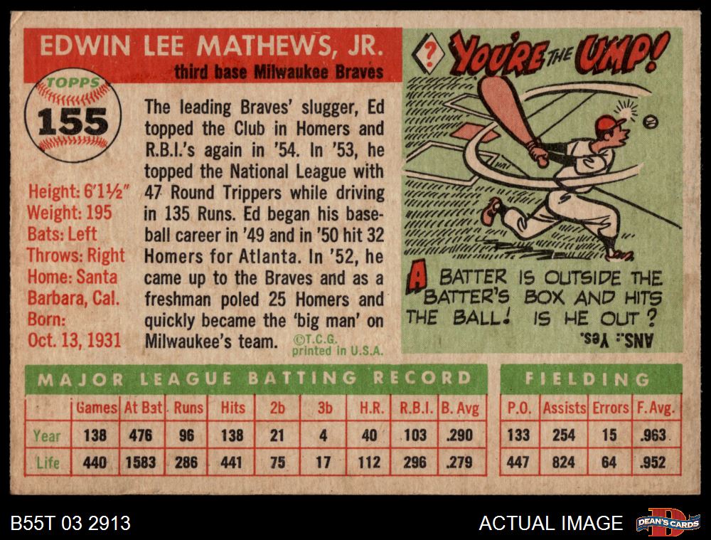 1955 Topps #155 Eddie Mathews 4 - VG/EX