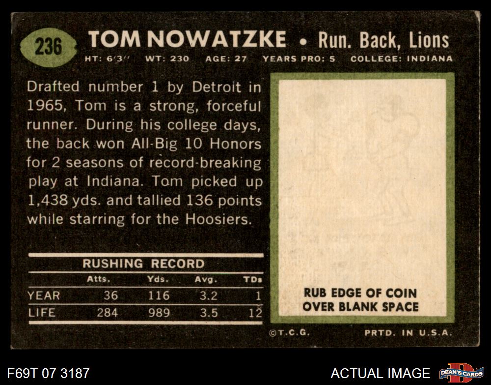 1969 Topps #236 Tom Nowatzke 4 - VG/EX