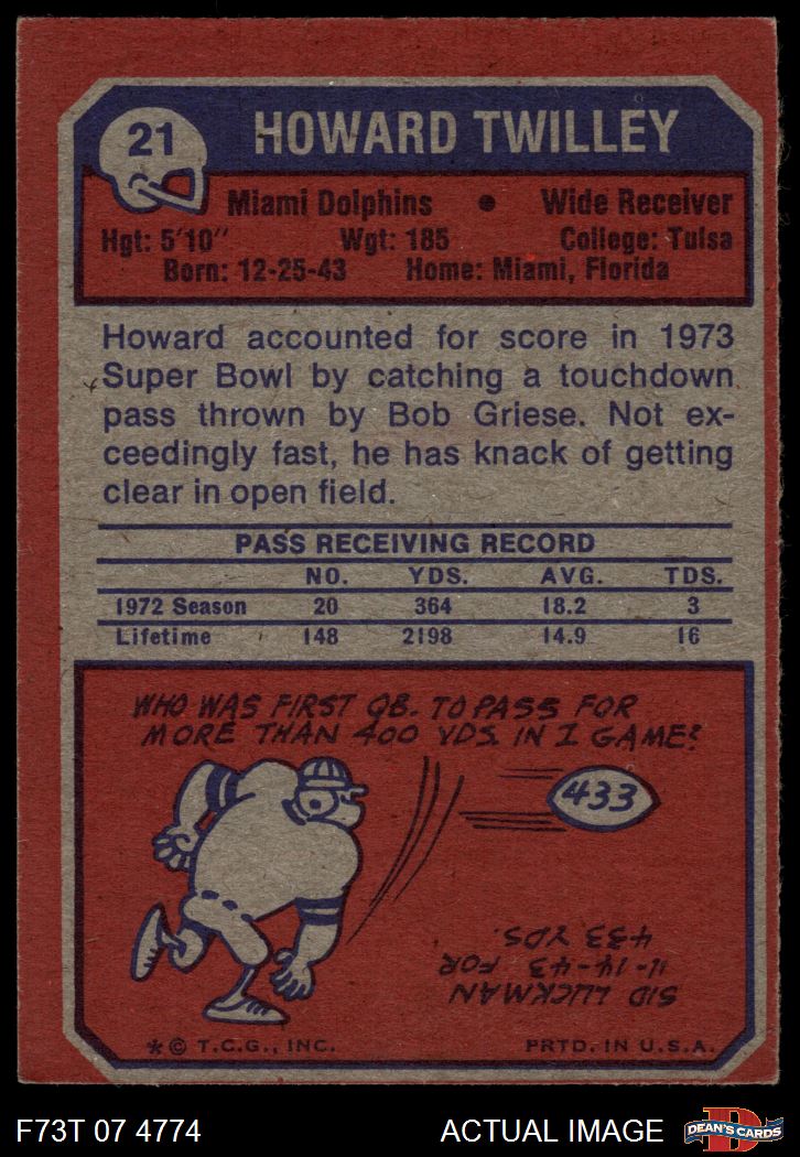 1973 Topps #21 Howard Twilley 3 - VG
