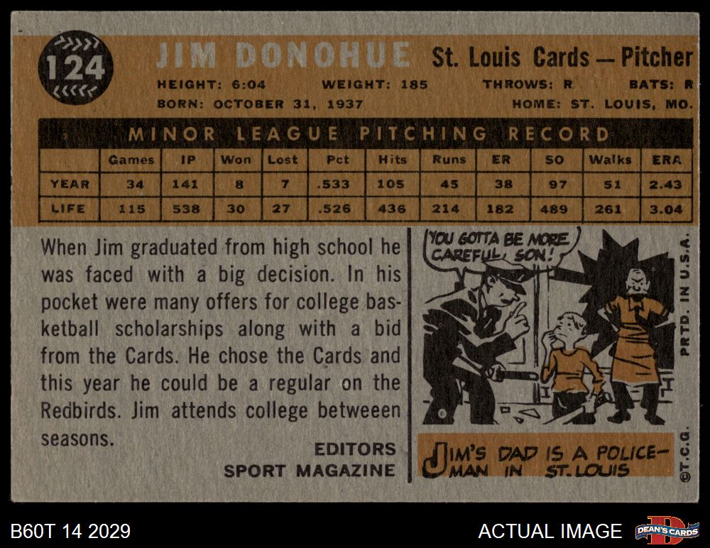 1960 Topps #124 - Jim Donohue Rookie Star 4 - VG/EX