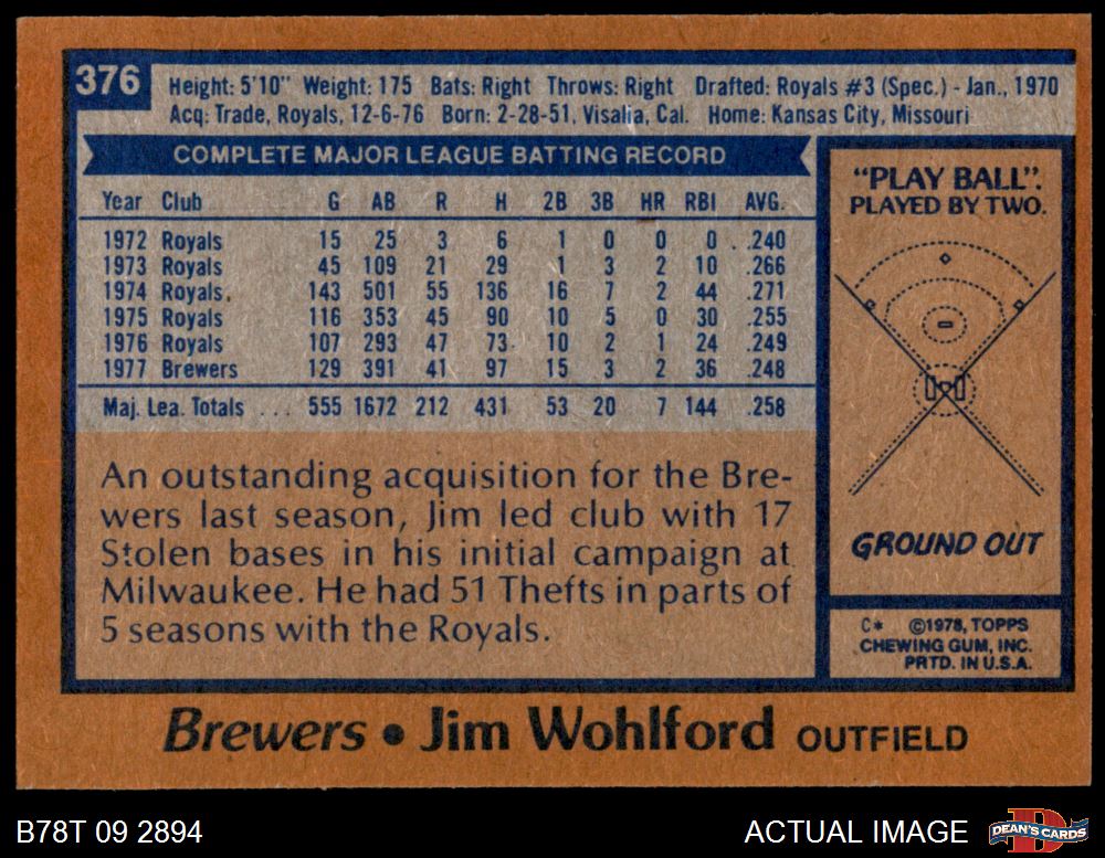 1978 Topps #376 Jim Wohlford 6 - EX/MT