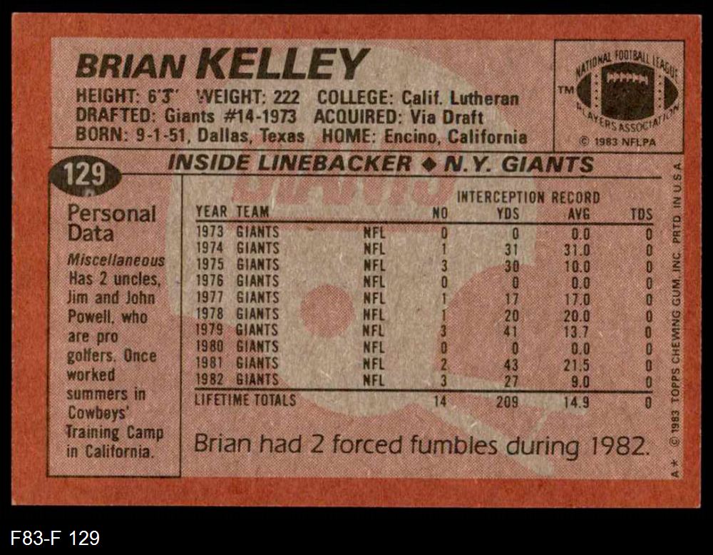 1983 Topps #129 Brian Kelley 8 - NM/MT