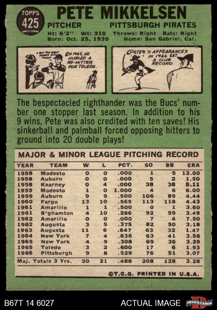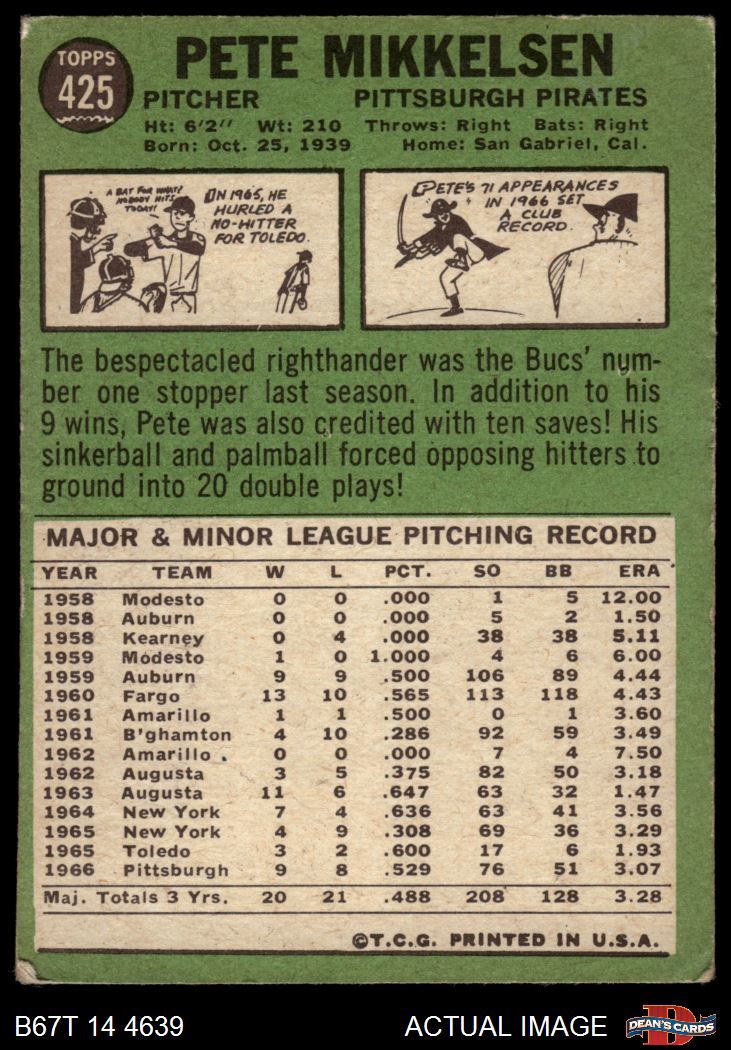 1967 Topps #425 Pete Mikkelsen 2 - GOOD