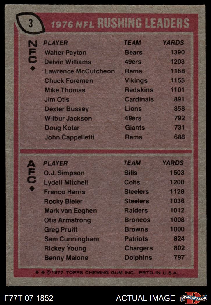 1977 Topps #3 Rushing Leaders