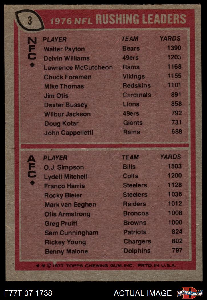 1977 Topps #3 - Walter Payton / O.J. Simpson Rushing Leaders 6.5 - EX/MT+