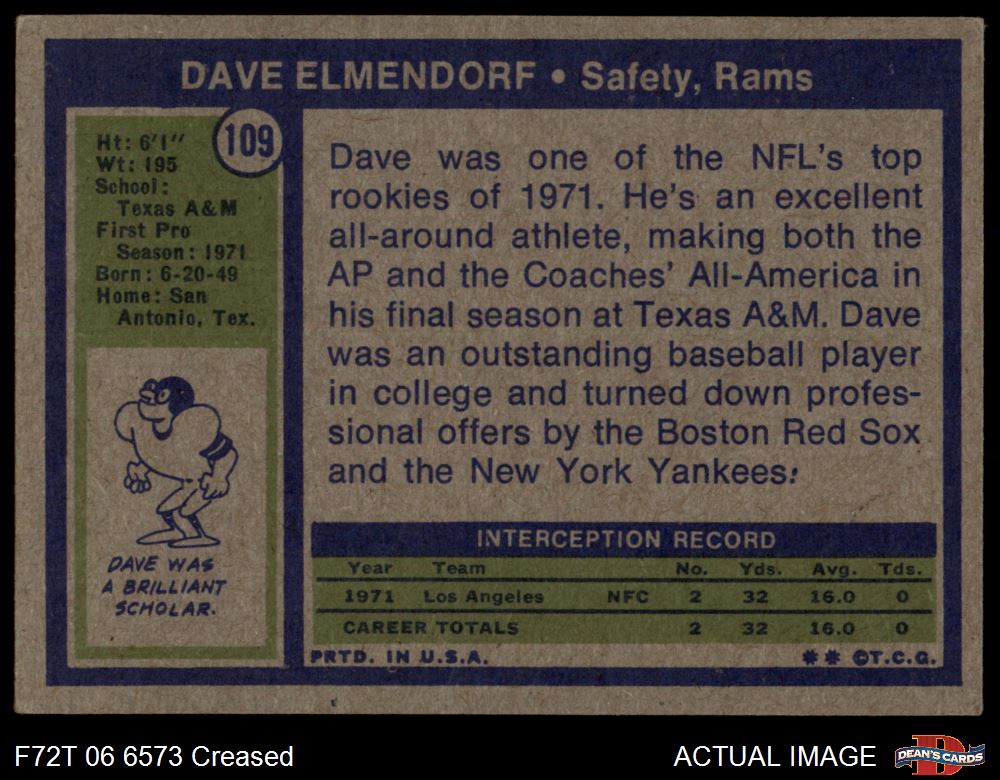1972 Topps #109 Dave Elmendorf Front Thumbnail