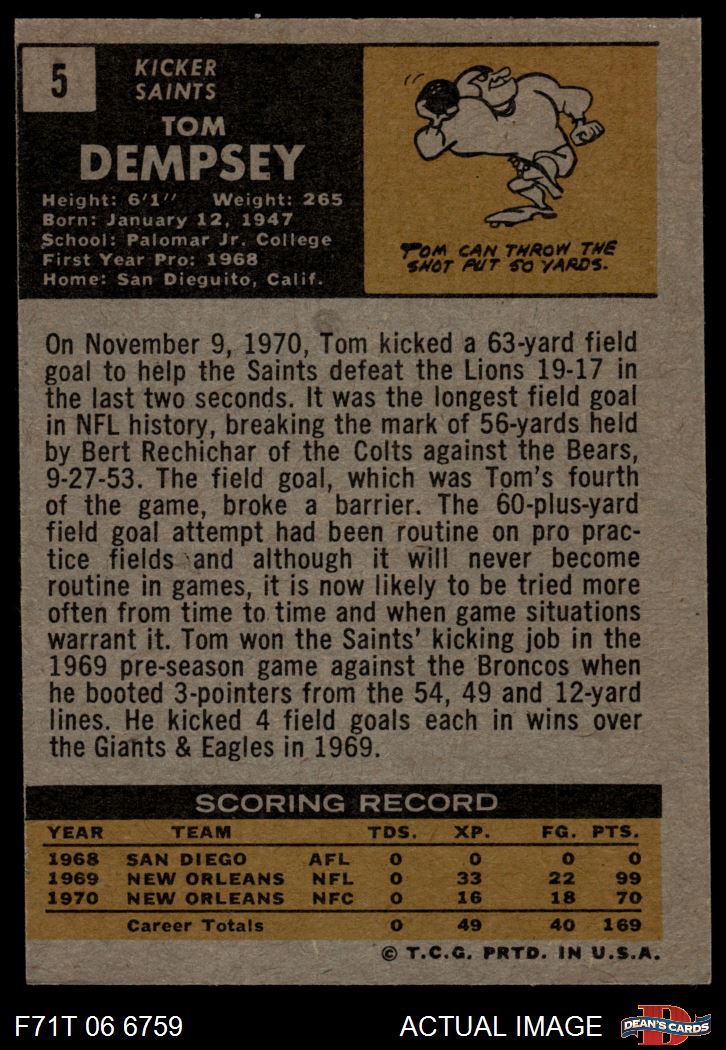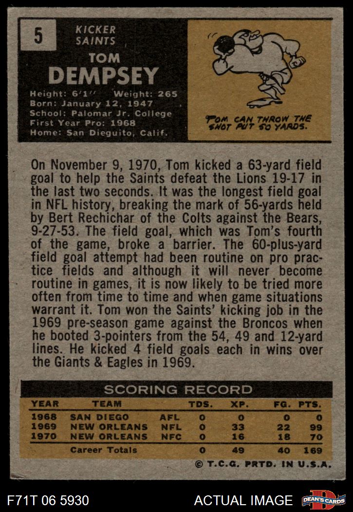 1971 Topps #5 Tom Dempsey Front Thumbnail