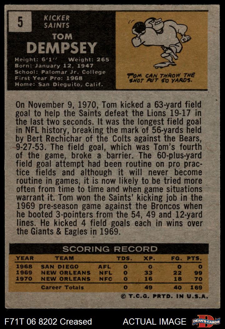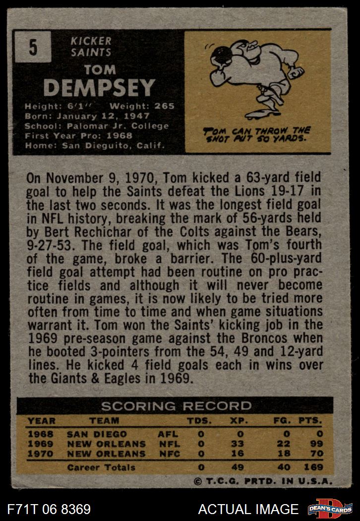 1971 Topps #5 Tom Dempsey 3 - VG