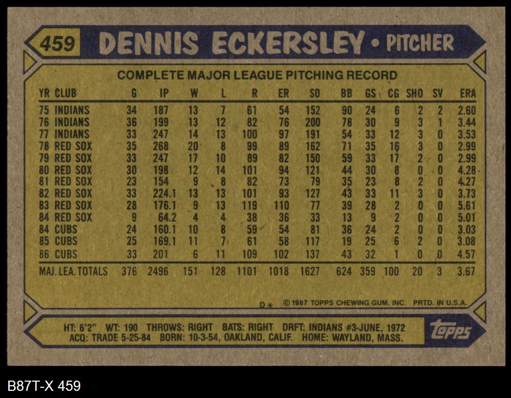 1987 Topps #459 Dennis Eckersley