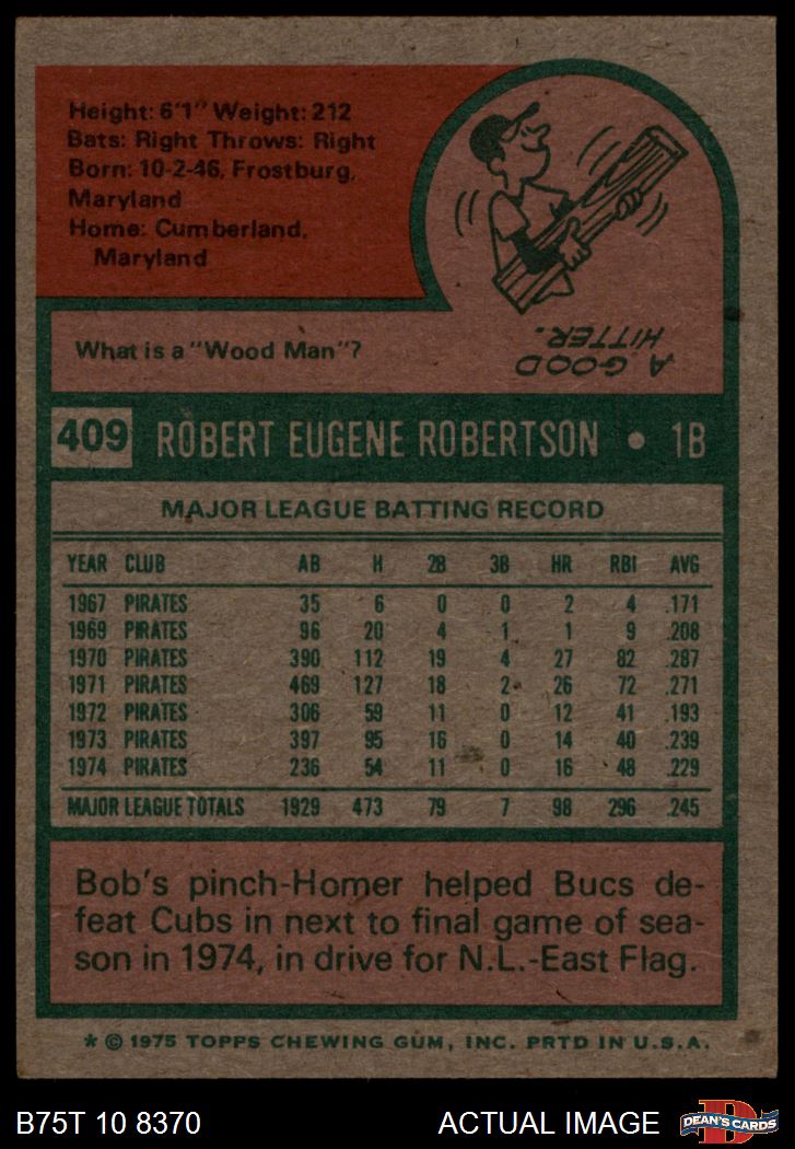 1975 Topps #409 Bob Robertson 3 - VG