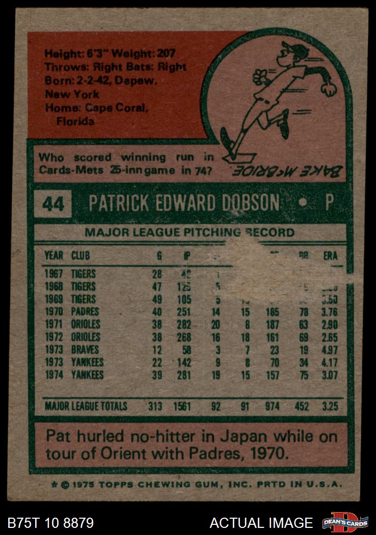 1975 Topps #44 Pat Dobson 1 - POOR