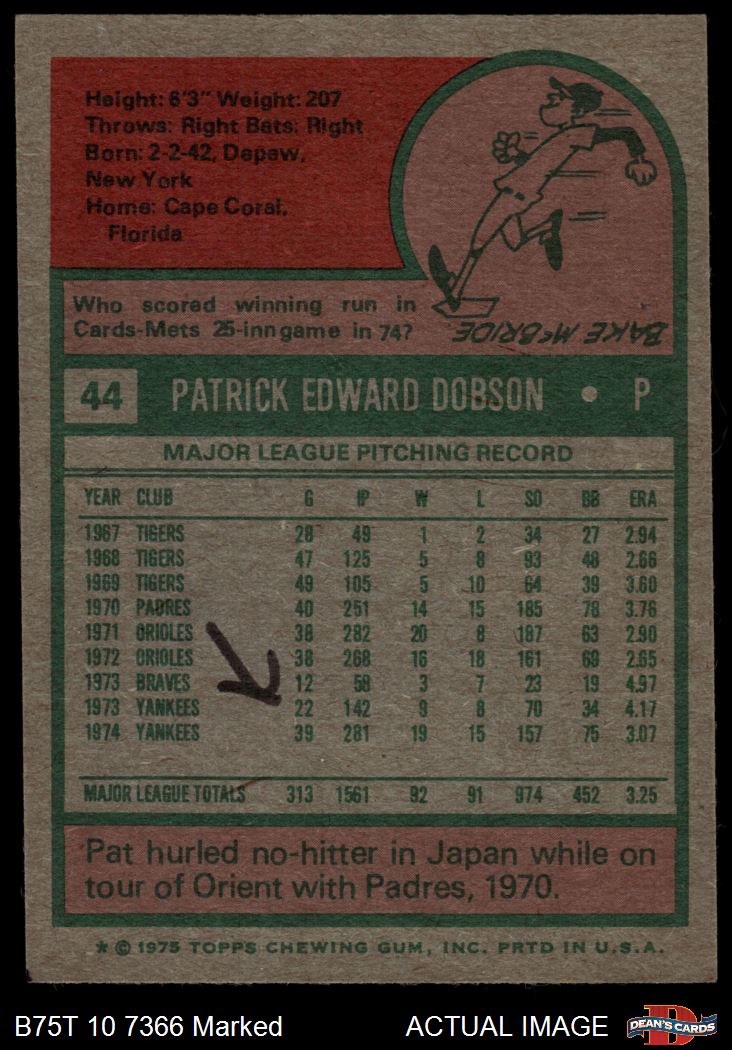 1975 Topps #44 Pat Dobson 1.5 - FAIR