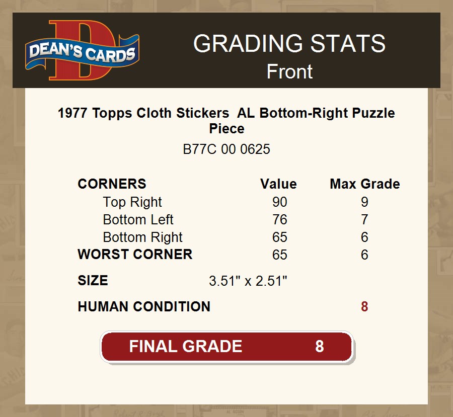 1977 Topps Cloth Stickers AL Bottom-Right Puzzle Piece