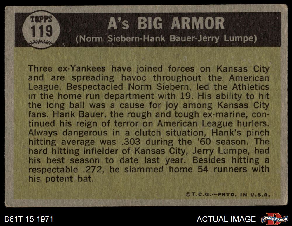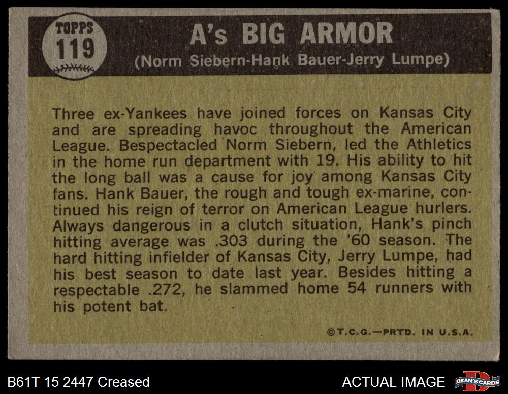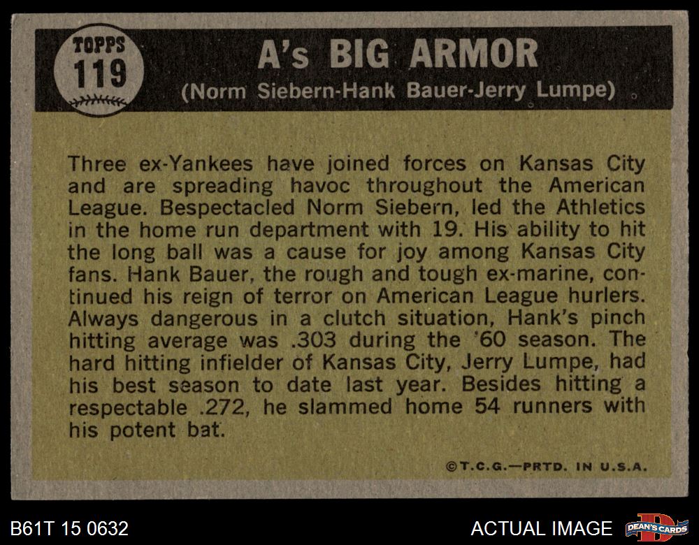 1961 Topps #119 A's Big Armor
