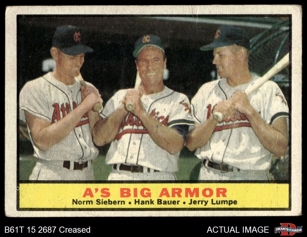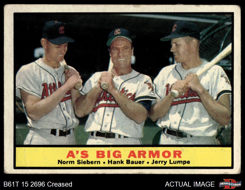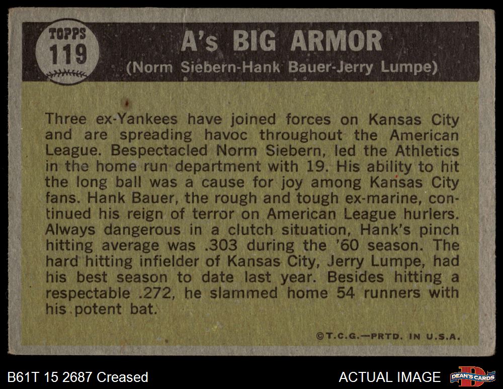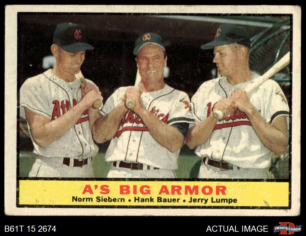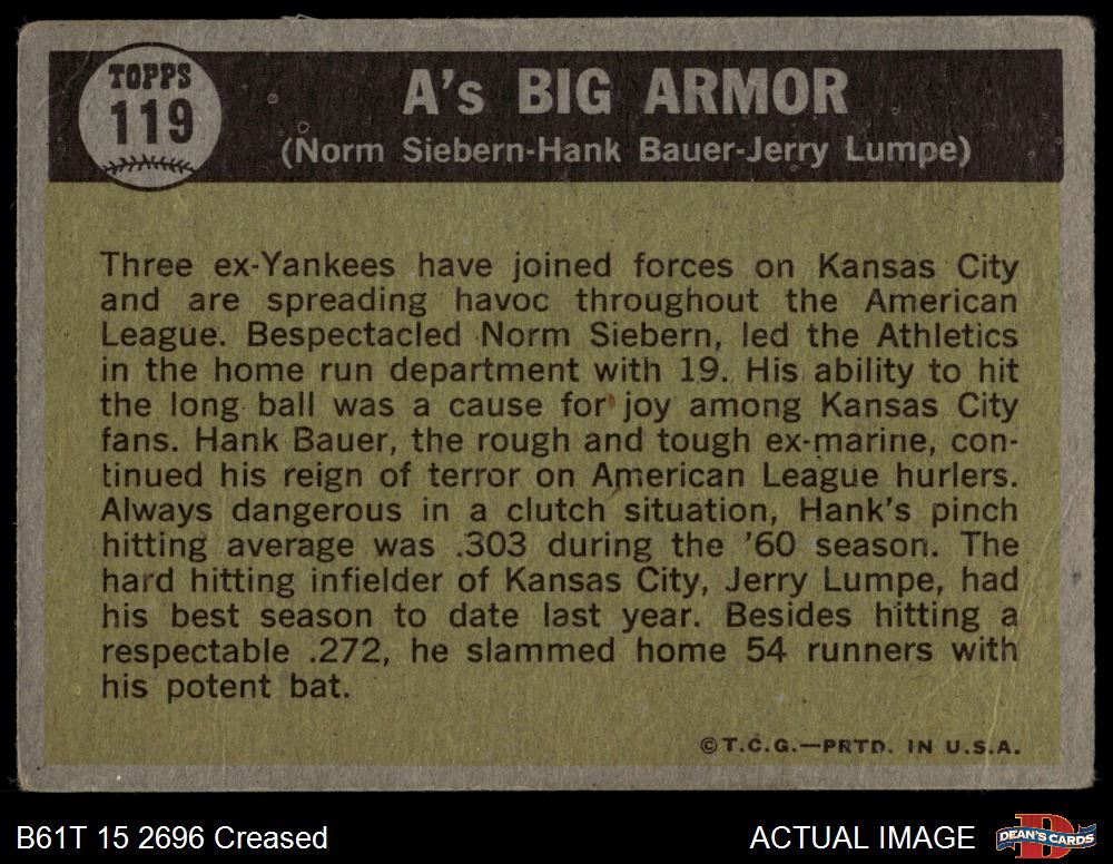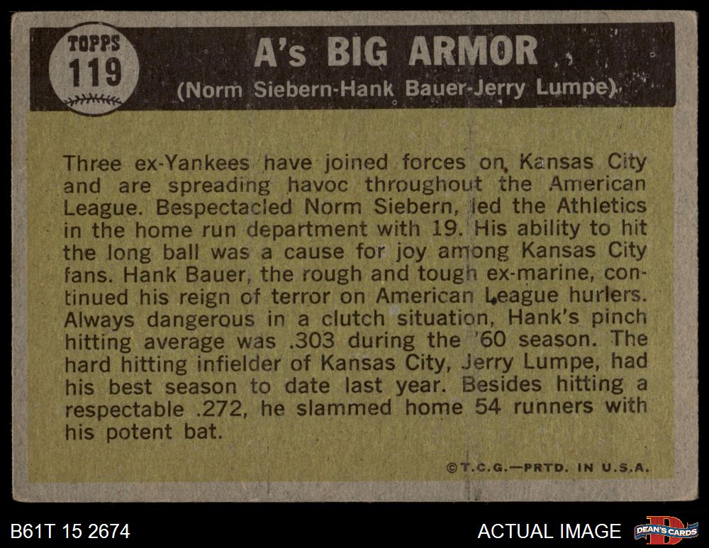 1961 Topps #119 - Norm Siebern / Hank Bauer / Jerry Lumpe A's Big Armor 2 - GOOD