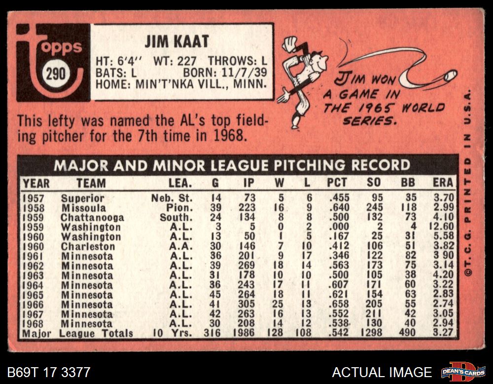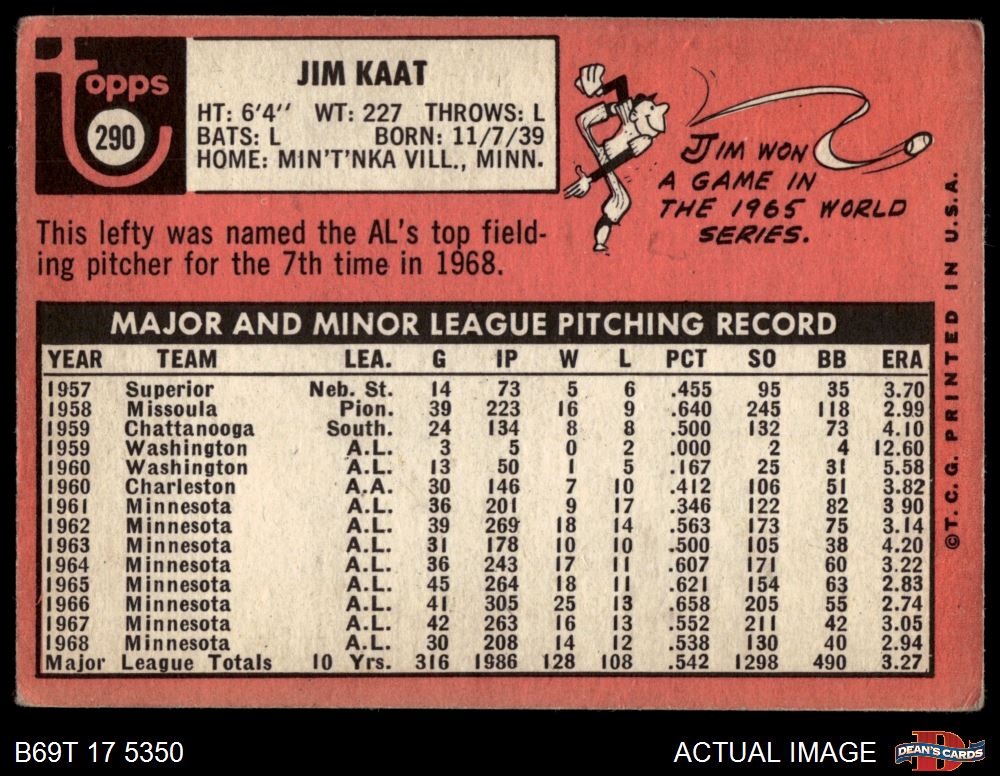 1969 Topps #290 Jim Kaat 2 - GOOD