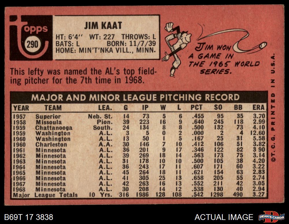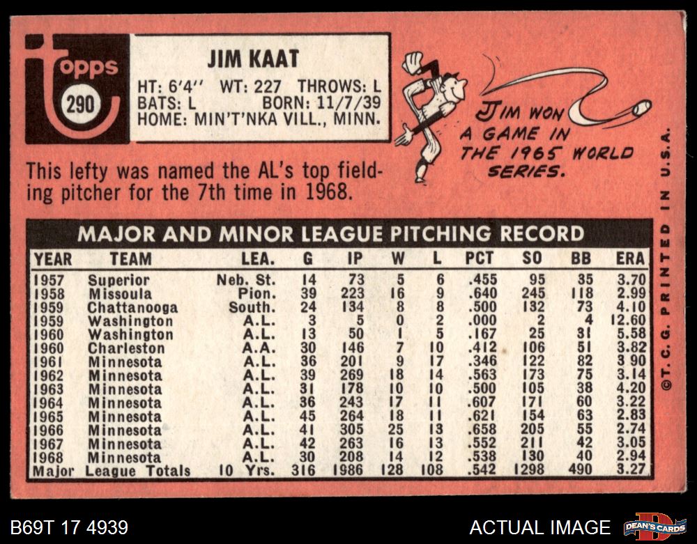 1969 Topps #290 Jim Kaat 4 - VG/EX