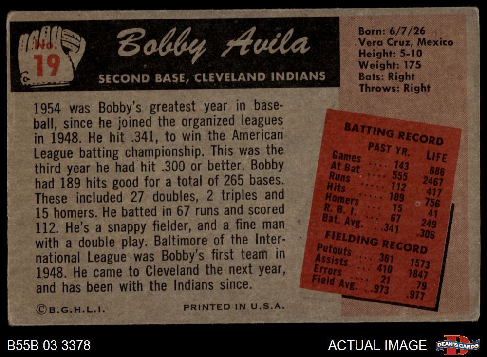 1955 Bowman #19 Bobby Avila