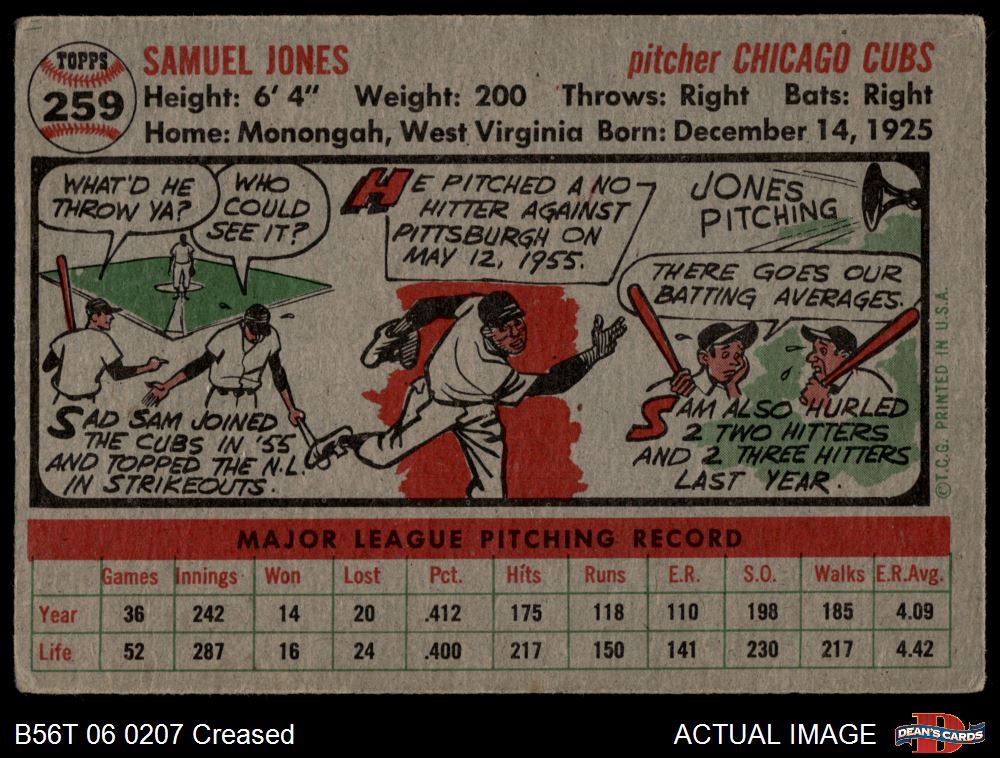 1956 Topps #259 Sam Jones 2 - GOOD