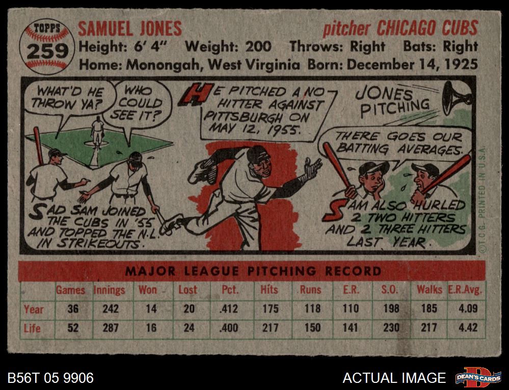 1956 Topps #259 Sam Jones 3 - VG