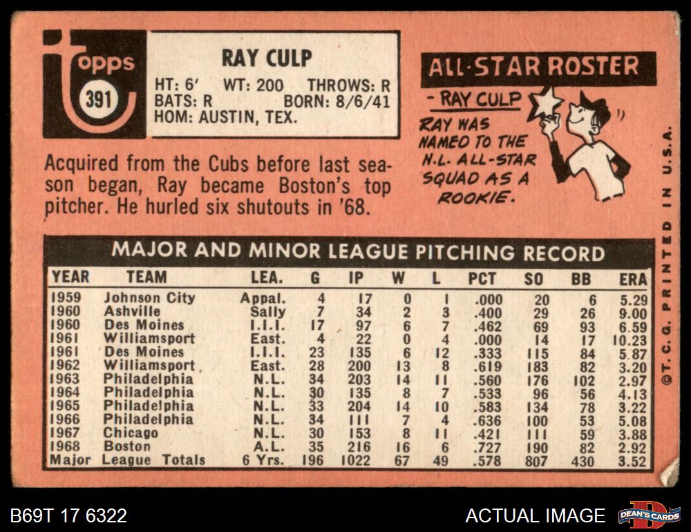 1969 Topps #391 Ray Culp 1.5 - FAIR