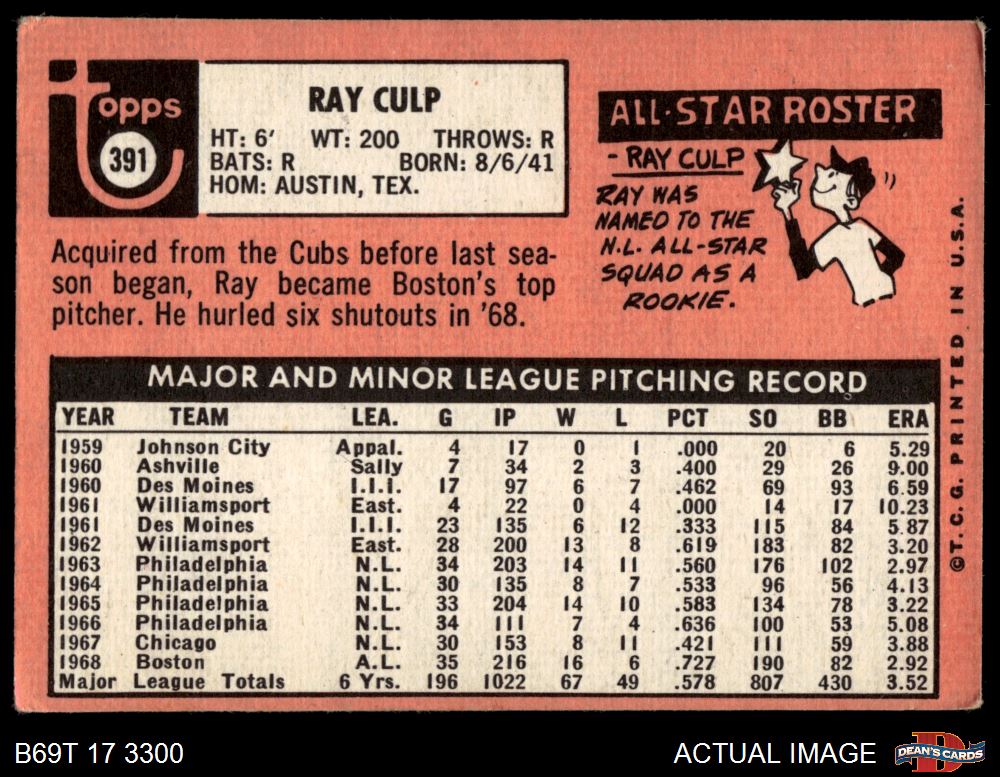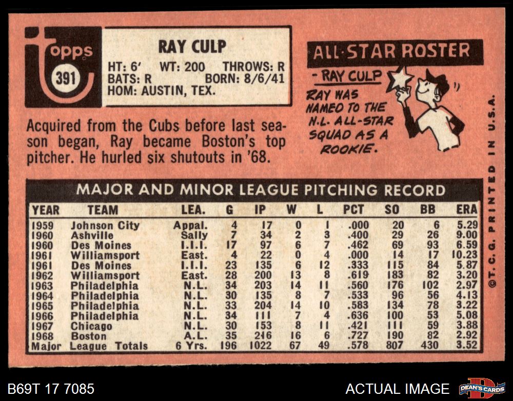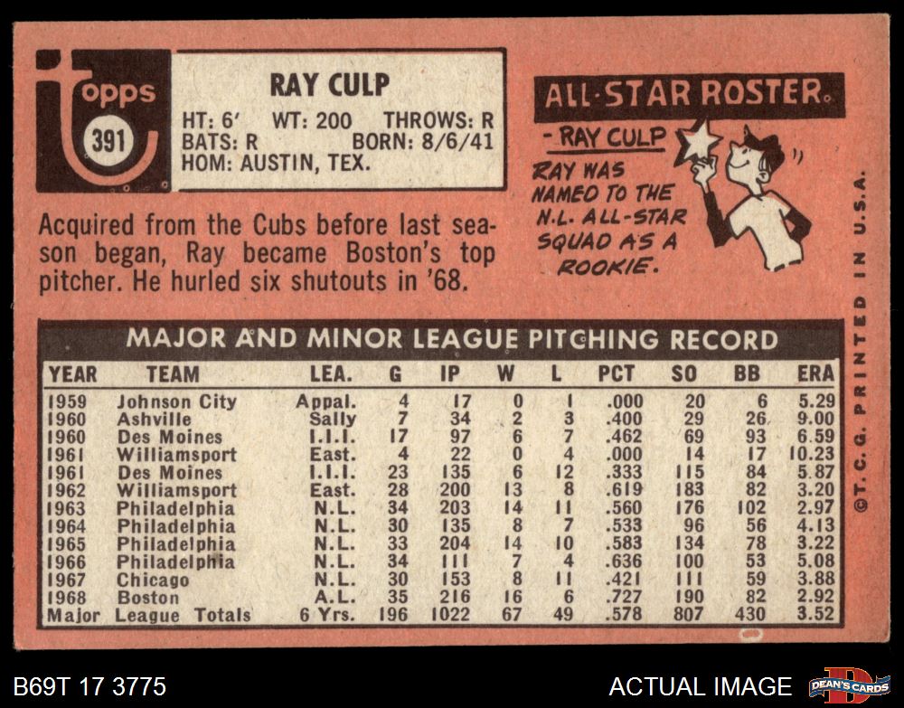 1969 Topps #391 Ray Culp