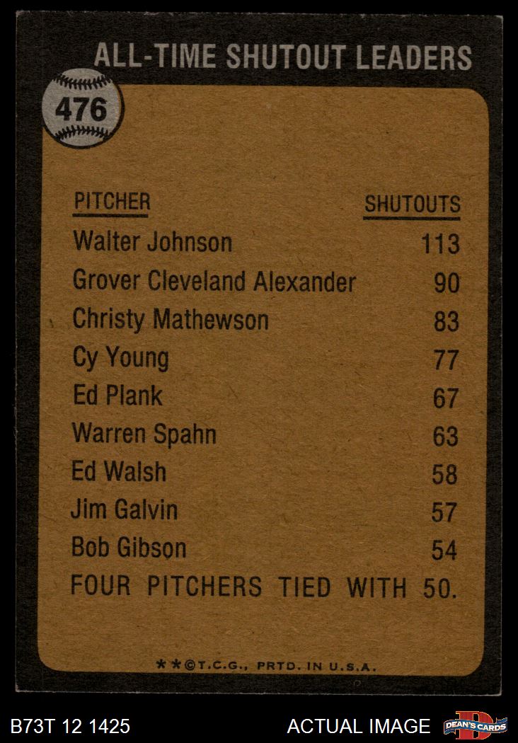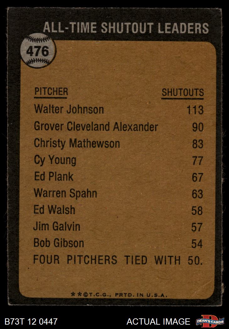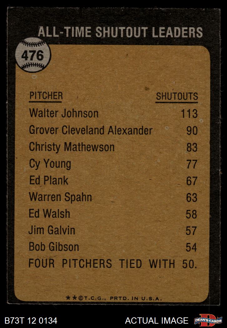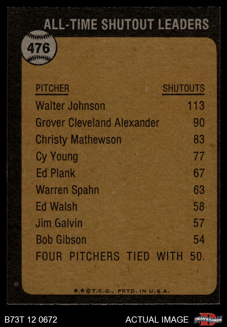 1973 Topps #476 All-Time Shutout Leader