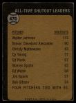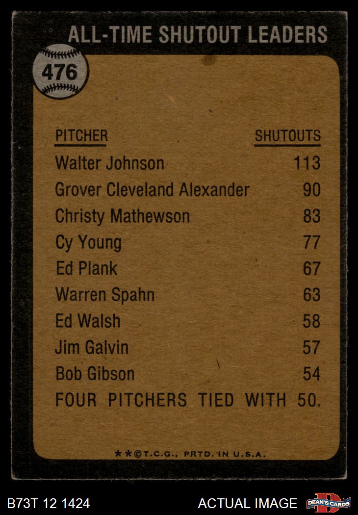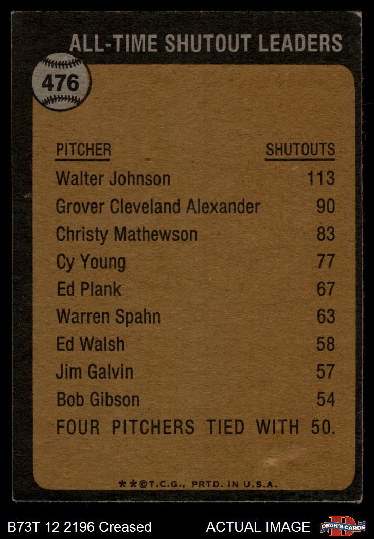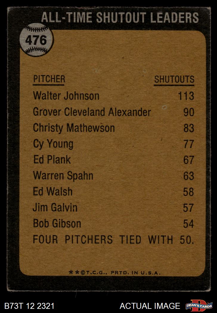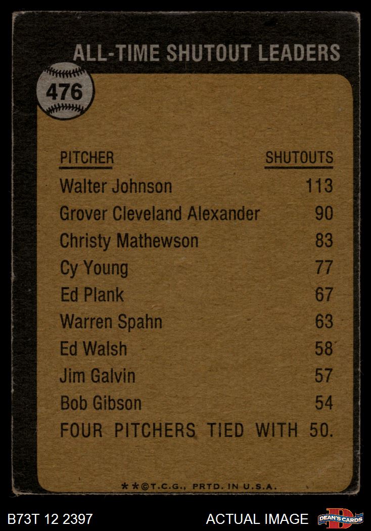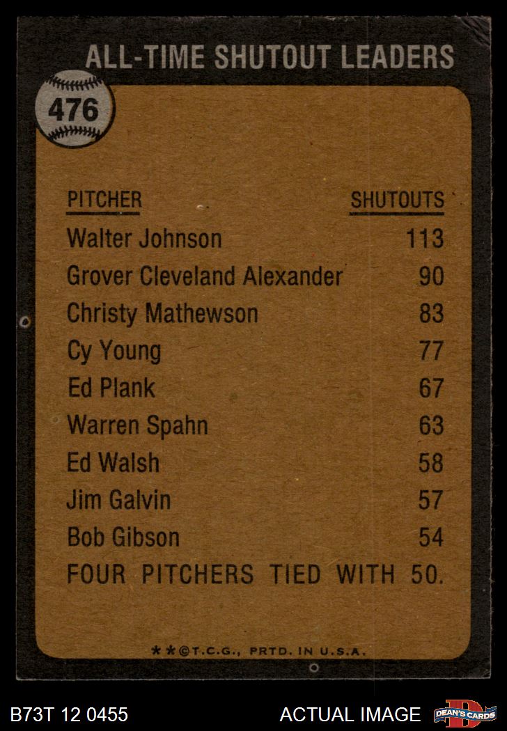 1973 Topps #476 All-Time Shutout Leader