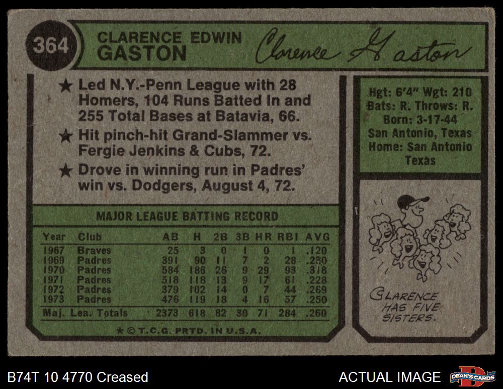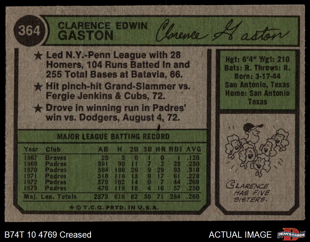 1974 Topps #364 SD Cito Gaston 3 - VG