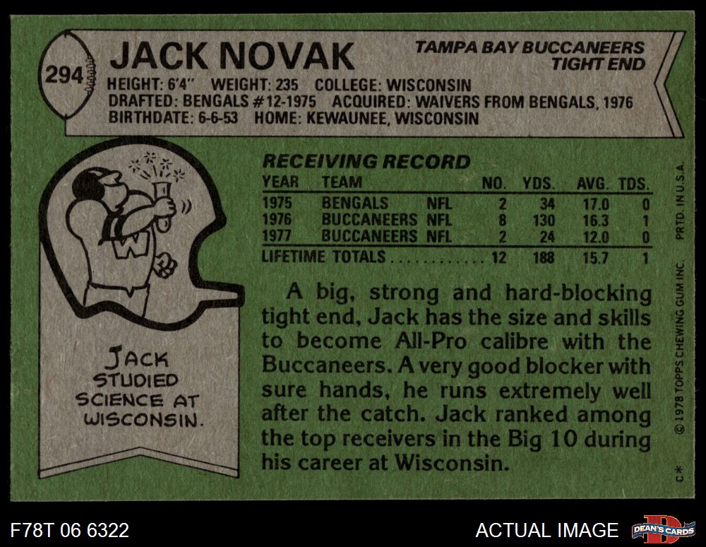 1978 Topps #294 Jack Novak 8 - NM/MT