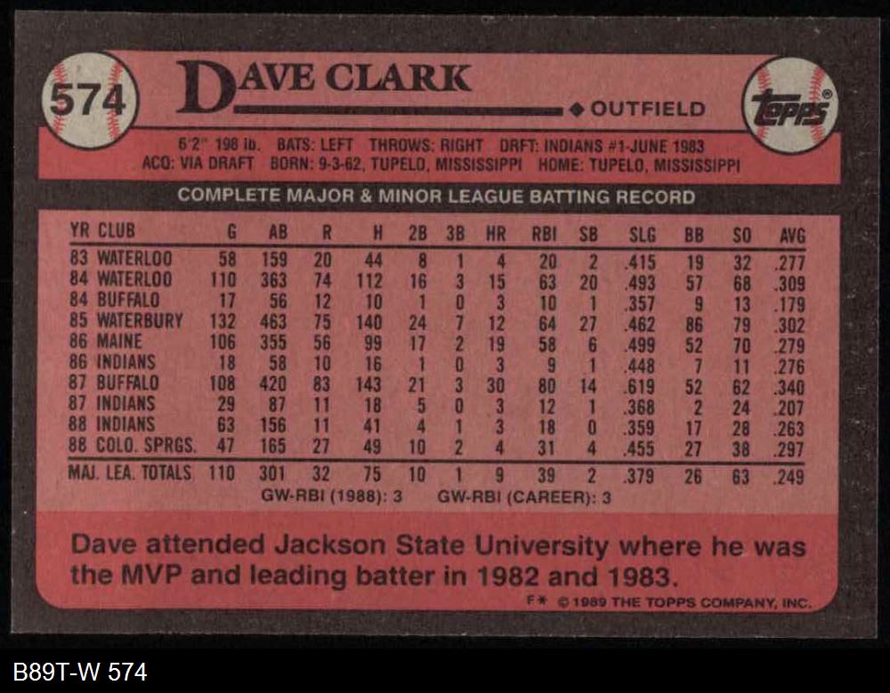 1989 Topps #574 Dave Clark 8 - NM/MT