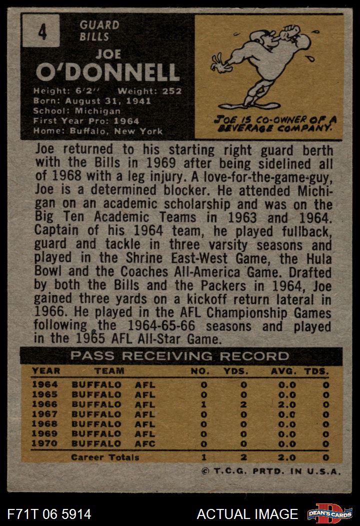 1971 Topps #4 Joe O'Donnell 6 - EX/MT
