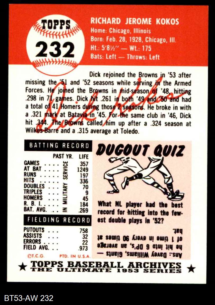 1953 Topps Archives / Reprint (1,401 available)1953 Topps Archives Browns (50 available)